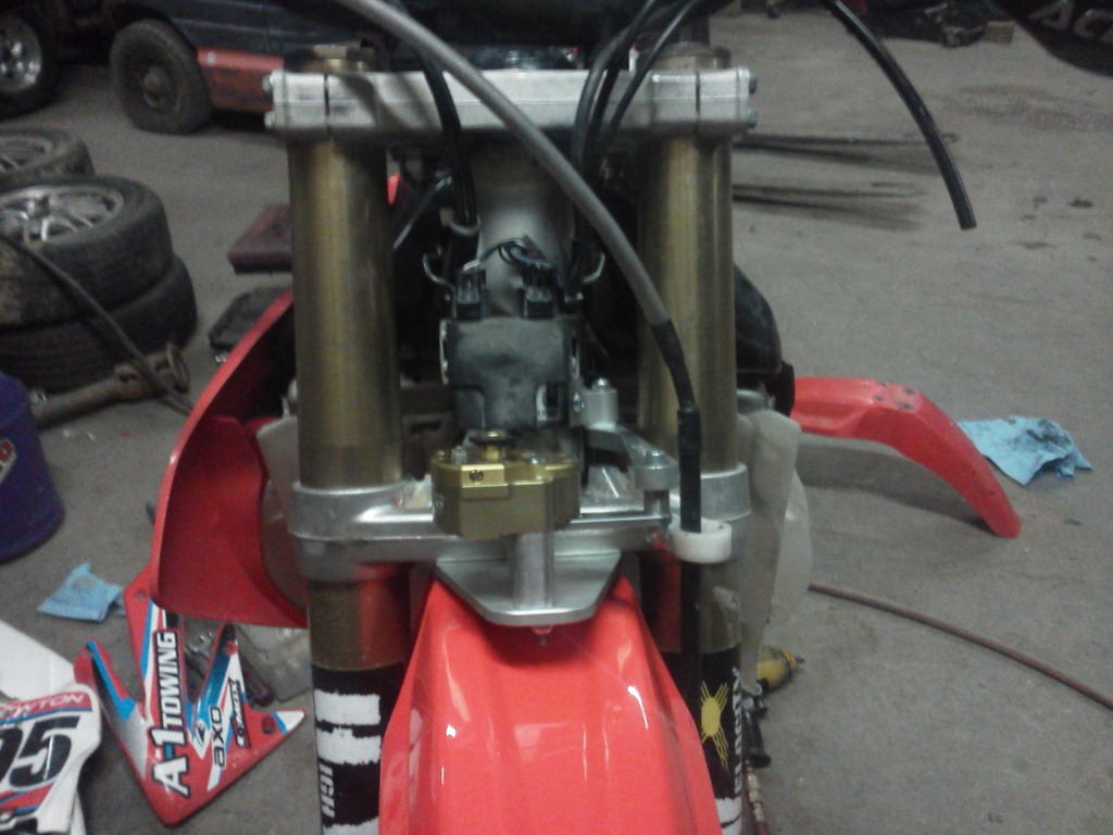 On to the front, I decided to mount up my stabilizer before I grease the steering stem as the forks come off tomorrow to go to the suspension shop with the shock to be serviced