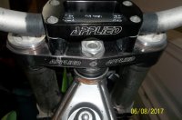 Came with the service manual, a Blue-Point digital dial caliper, triangle stand, some snazzy carbon fiber shields and skid plate, pro-taper bars and an Applied upper triple-tree clamp, and some ASV levers.