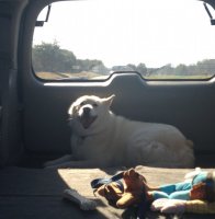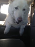 I bought a dog today! It's a 2 year old Alaskan Malamute. Female and pure white. She's very beautiful and playful, but she needs a little bit of training. But she's sweet.